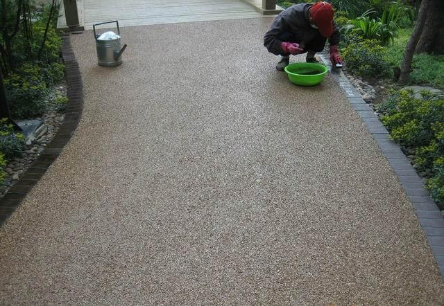 乐彩汇 水泥混拌法:彩砾石和水泥混拌一起,经找平,涂抹,擦抿,表面处理后完成,适合桑拿室,浴室,户外,庭园道路,柱面景观,水井等。