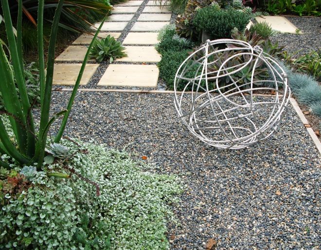 5、你是否担心碎石粘在你的鞋底被带入室内?首先,你选择的石板必须要达到一定的尺寸,至少不能小于你的脚。一般大直径的砾石,不容易粘在你的鞋底被带进室内。另外就是,刚才强调的:一定要正确安装,砾石也会固定到位。同时尽量使用同一类型的砾石。——成都别墅花园设计施工参考