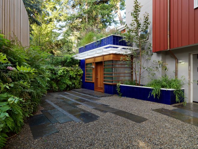 安装提示:为了减少碎石跑到石板上,首先安装一层压实的基岩,然后铺上一层碎石和石板,定位石板,使它们略高于砾石。安装完成后,用水冲洗石板也有助于固定砾石。——成都别墅花园设计施工参考。